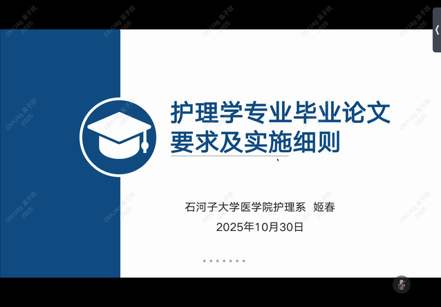 为规范2026届护理学本科毕业论文工作,明确开题报告撰写要求,2025年10月30日20:30,欧美色情 通过腾讯会议举办“2026届护理学本科毕业论文安排及开题报告撰写培训”,2026届护理本科毕业论文指导老师及2026届护理学专业学生参与本次培训,此次培训由姬春老师主持。